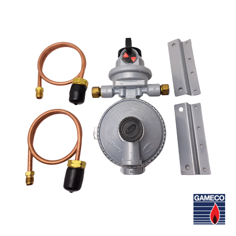 Auto Changeover LPG Regulator 350 Mj/Hr. Supplied with 2 x 20″ Copper Pigtails. 3/8″ NPT outlet.