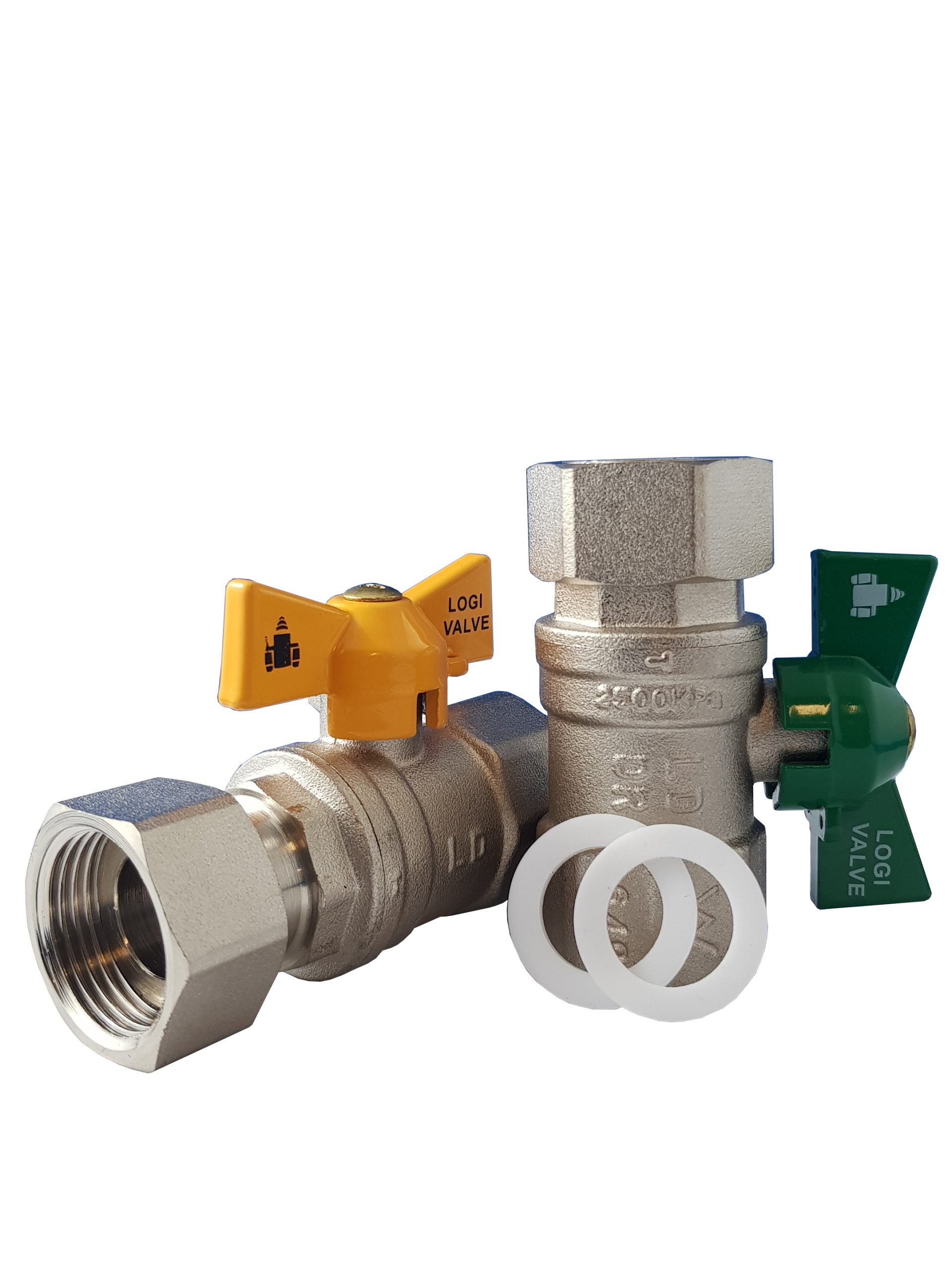 Nickle plated brass ball valve 3/8″ BSP Male by Female with butterfly handle. Full bore.