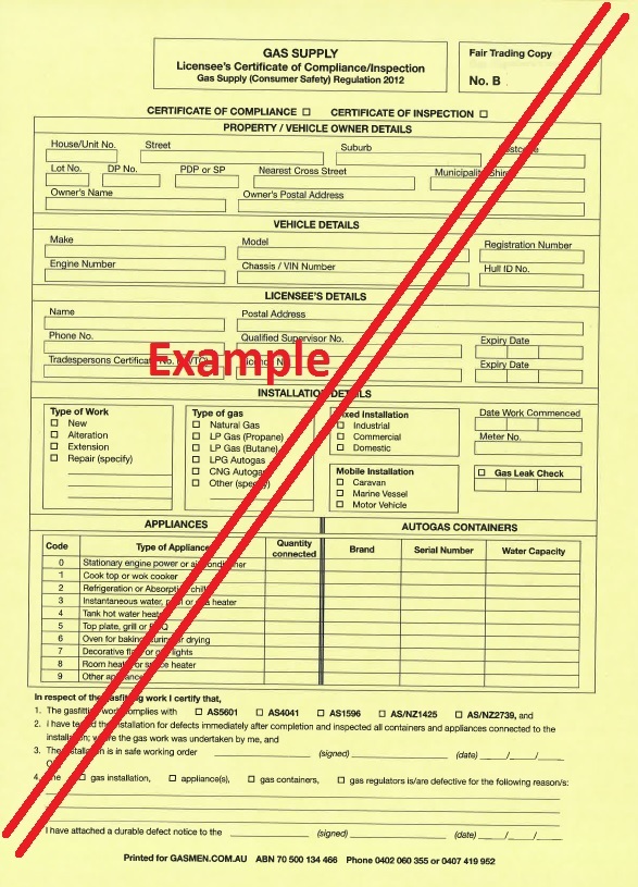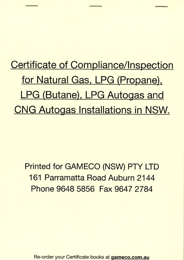 Certificate of Compliance/Inspections for Natural Gas, LPG (Propane), LPG (Butane), LPG (Autogas) and CNG Autogas Installations in NSW.