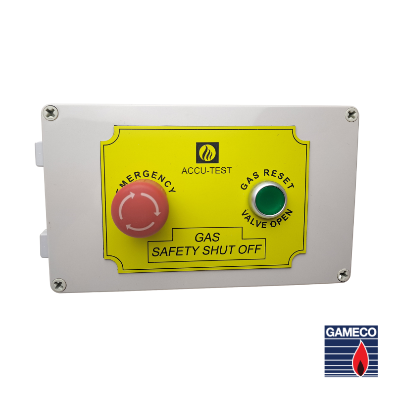 When connected to a 240V AC gas solenoid valve, the Gas Solenoid Valve Safety Controller (not included) will shut off the gas supply with emergency stop or an activation of any external interlock. Gas flow can be interrupted either by manual activation or by connecting remote interlocks (such as an Emergency Stop button “E stop”, fire alarms, gas detection or such like inputs) into the control circuit.