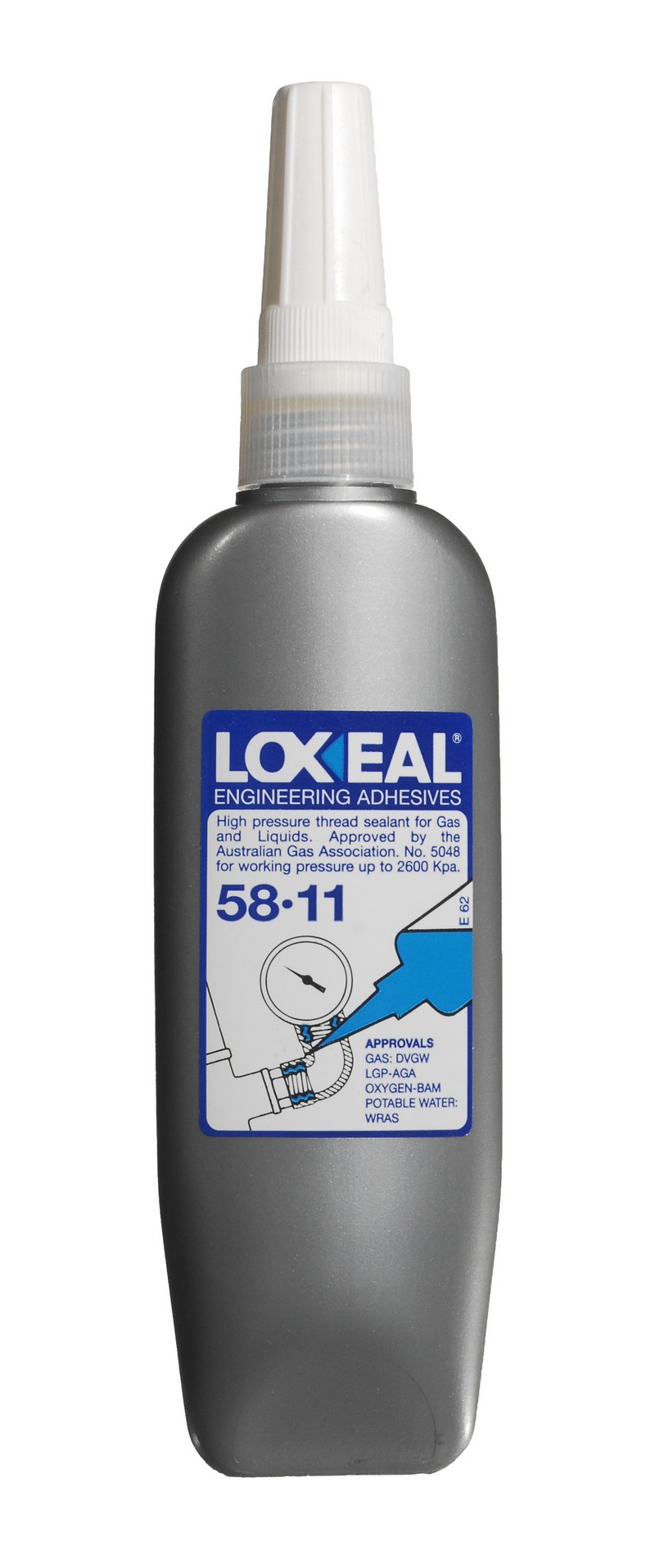 Anaerobic curing adhesive for sealing of metal thread joints. Approved for Gas ( DVGW, DIN-EN 751-1), high pressure gas and GLP (Australian Gas Association – Approval No. 5048) for working pressure up to 20 Bars. Approved for use with gaseous oxygen up to 10 Bars and +60°C (BAM 1432/95 4-755). Approved for potable water (WRC). Instructions for use with potable water : apply product on male threads only, wait 24 hrs. after assembly. It replaces PTFE tape and yarn and gives instant sealing against moderate pressure. It seals against gas, water, LPG, hydrocarbons, oils and other chemicals. Thixotropic property prevents migration from thread of the sealant before or during curing. Shocks and vibrations resistant, unaffected sealing properties in the temperature range from -55°C to +150°C.