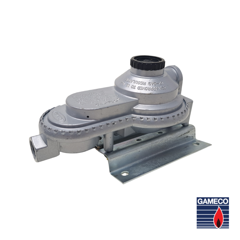 Twin stage regulator 200MJ/h ONLY, with Bracket kit and 3/8″ BSP outlet which is perfect for smaller copper pipe sizes commonly found on caravans and motor homes